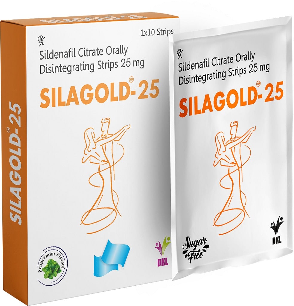 Silagold-25 is a fast-acting oral solution containing 25 mg of Sildenafil Citrate in an easy-to-use disintegrating strip form. Designed for individuals seeking enhanced vitality and confidence, it offers a peppermint flavor for a refreshing experience. The strips dissolve quickly in the mouth, eliminating the need for water, making it highly convenient for on-the-go use. Its sugar-free formulation caters to health-conscious users, ensuring effectiveness without added calories. Packaged with 1×10 strips, Silagold-25 is ideal for those looking for discreet, reliable, and quick absorption solutions to address specific needs. Boost your lifestyle with confidence and ease!